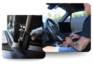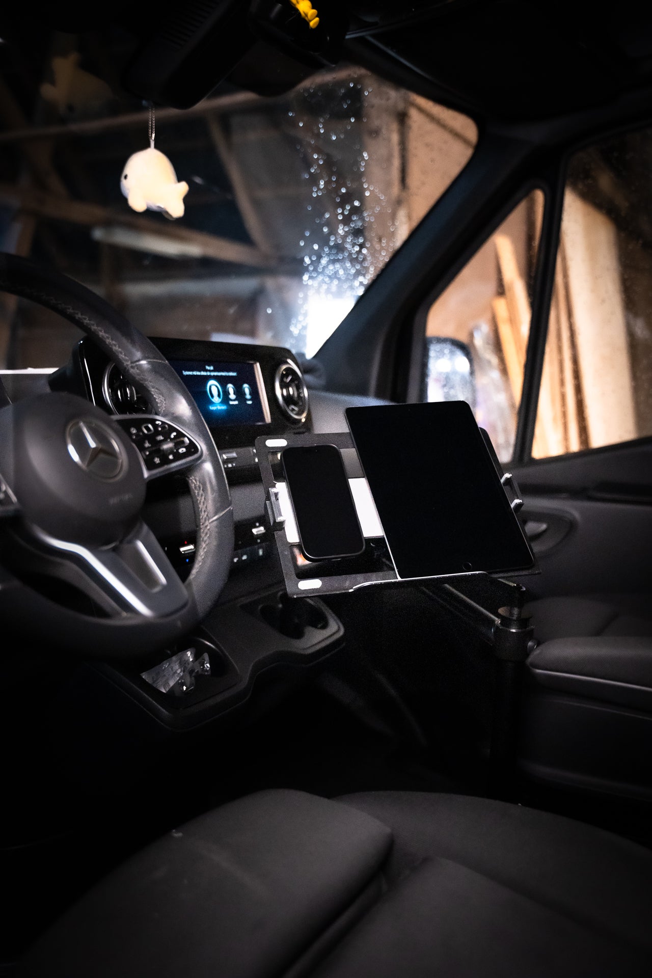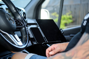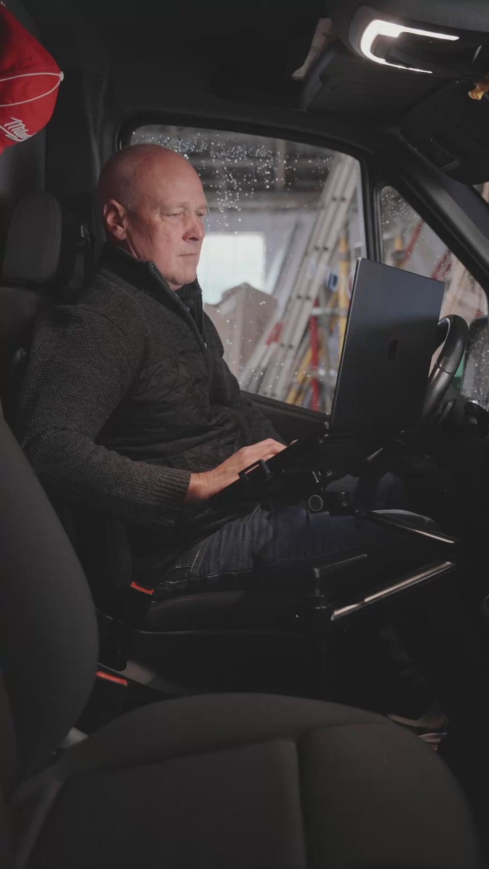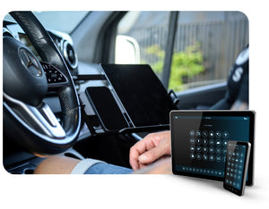 Super flot designet og inkl. smart holder til din Laptop, smartphone eller tablet der sørger for du får den rette ergonomiske arbejdsstilling og synsvinkel når du arbejder i bilen.