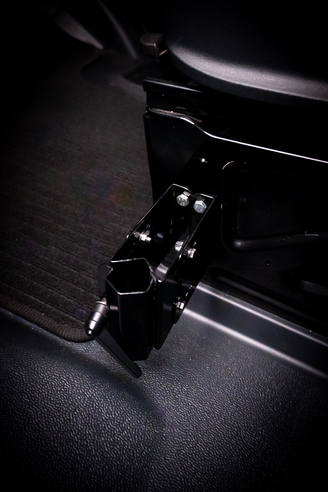 Med multi justerbart beslag der gør det let at monterer på sæde konsol, på siden, eller på front.